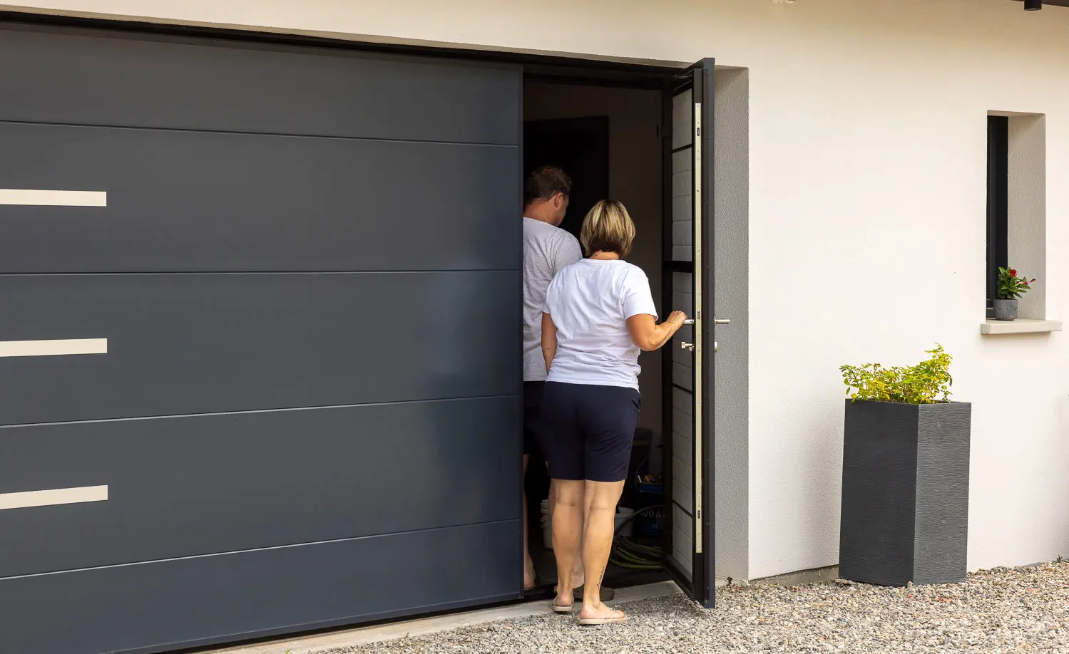 Sectionnelle, basculante, roulante ou pivotante : nous adaptons la porte de garage à votre architecture et à votre style de vie. Les panneaux sandwich de 42 mm isolent aussi efficacement qu'un mur, tandis que les fenêtres en aluminium acrylique laissent entrer la lumière sans compromettre la sécurité. Les systèmes domotiques SOMFY incluent l'éclairage LED, la détection d'obstacles et le contrôle par smartphone. Grâce à la batterie de secours et au kit photovoltaïque, vous restez autonome, même en cas de panne de courant.